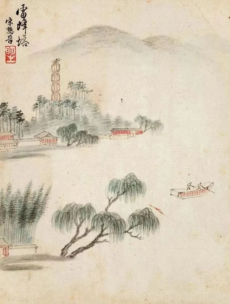 《西湖胜迹图册》是宋懋晋的代表作之一,这套册页共十开,精心描绘了杭州西湖周边的人文与自然景观。每一幅画作都充满了诗意和画意,展现了西湖在不同视角下的独特魅力。