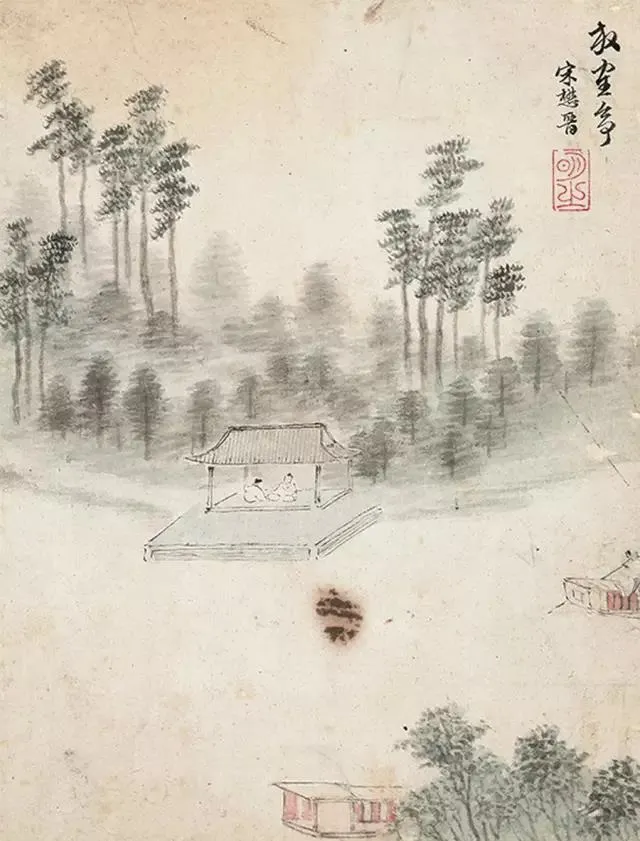 放鹤亭:放鹤亭是西湖边的一处名胜,画作中通过描绘亭子与周围山水的和谐共处,营造出一种超脱尘世的氛围。
